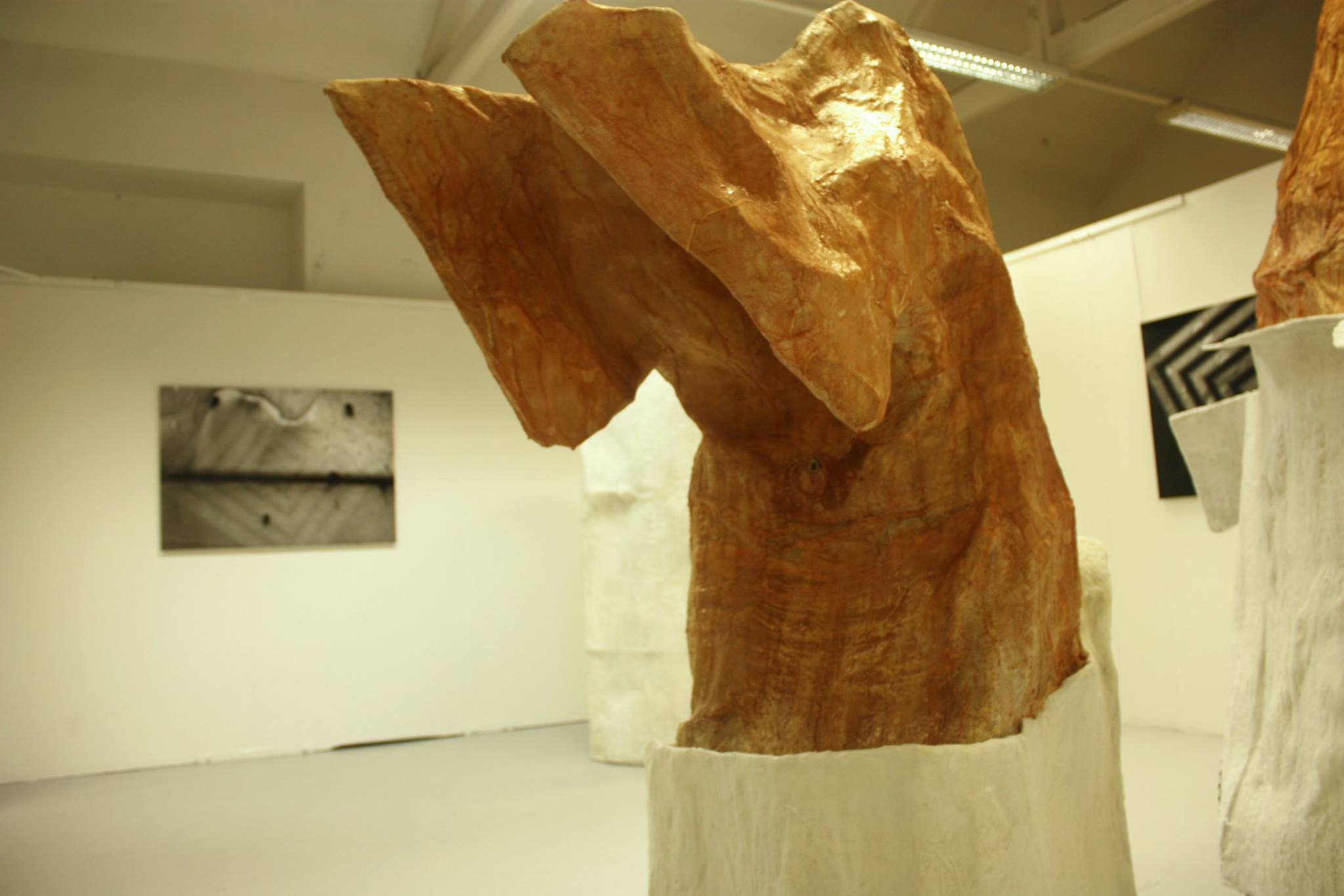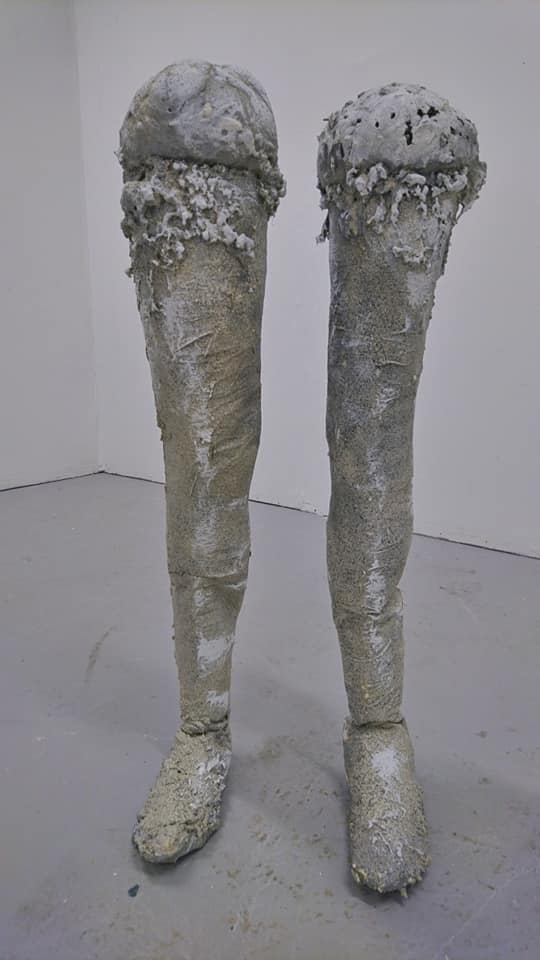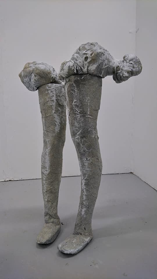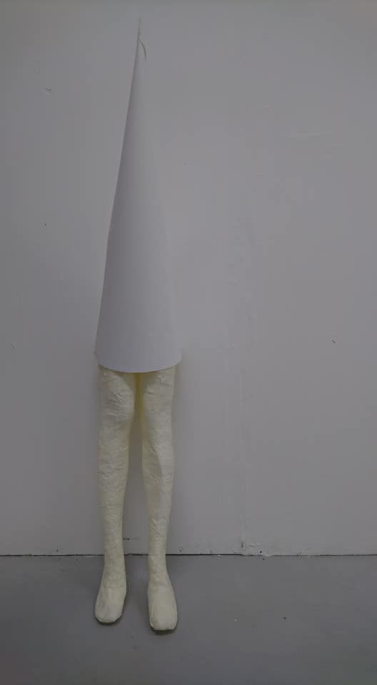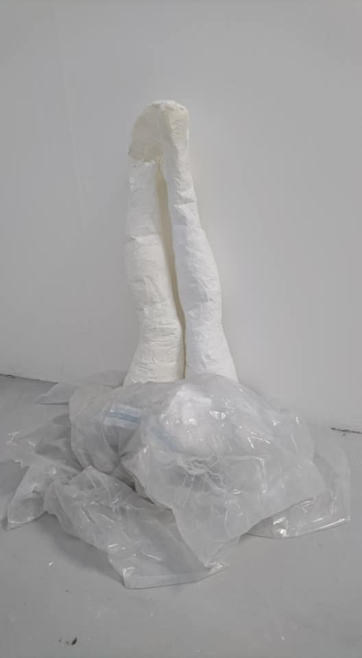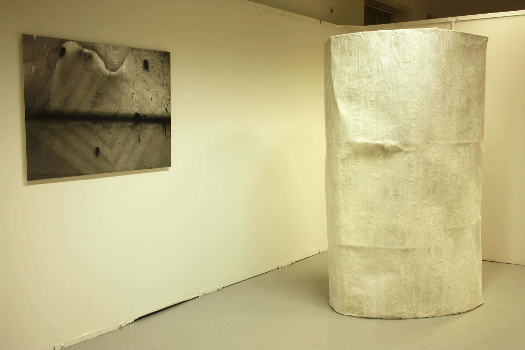 Paper, expanding foam, cement, texture spray, 95cm