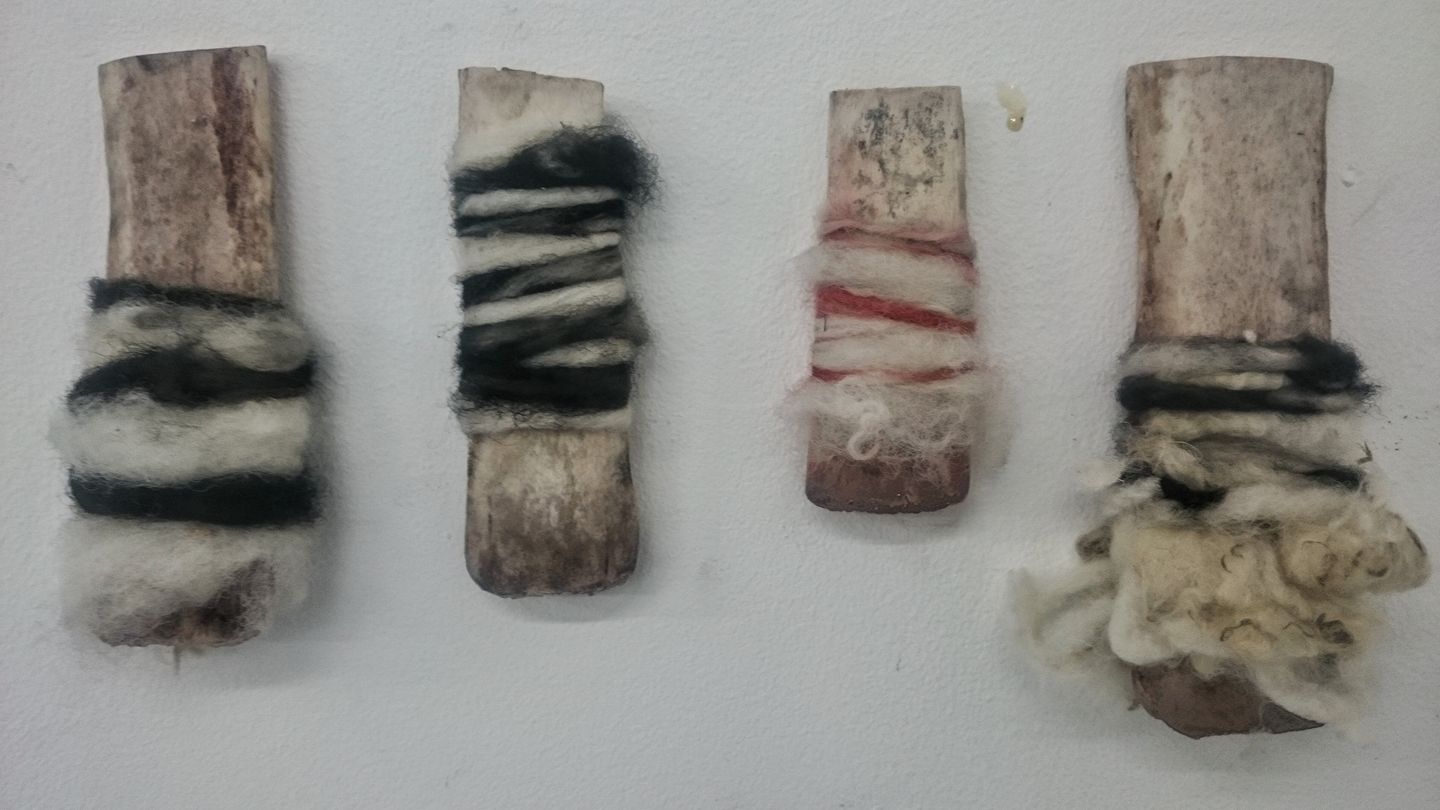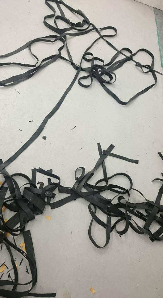 Instalation study, found objects, metal wire, hessian, rubber, fleeces, blue light projection