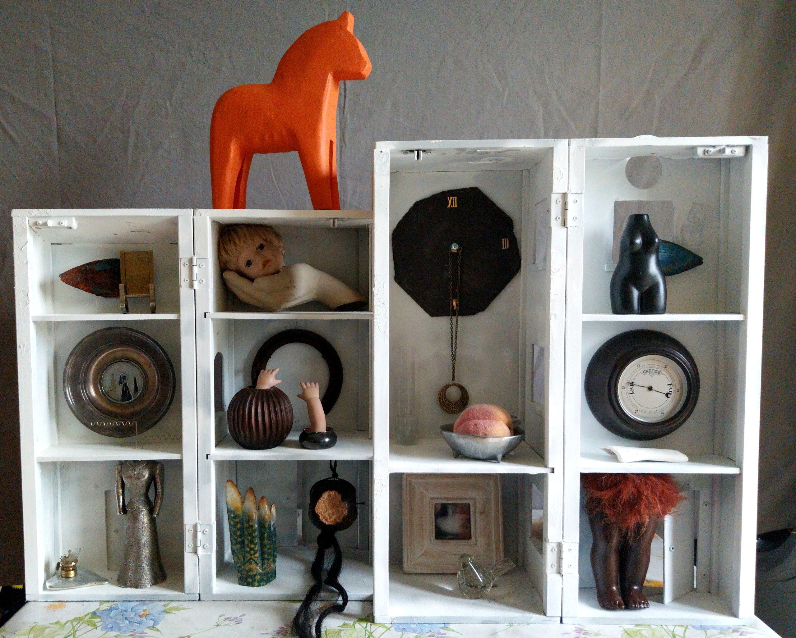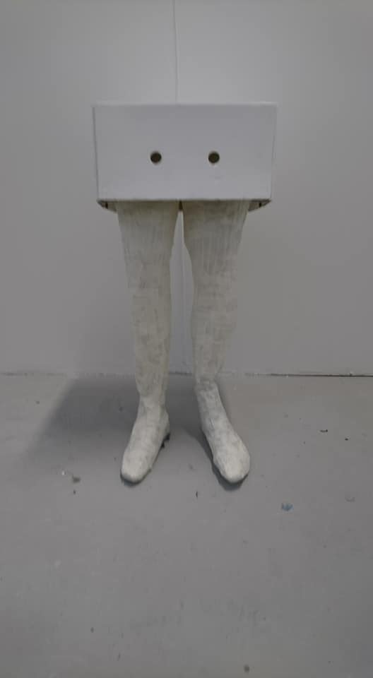 Assemblage, dimensions 97cm x 27cm x 82cm, found objects, spray paint, powertex